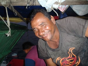 staan tegenover mij zitten zo'n 30 jongemannen op de grond die zien er allemaal niet fris uit. De sfeer wordt steeds grilliger de man die me bij de douane opgepikt heeft wordt steeds